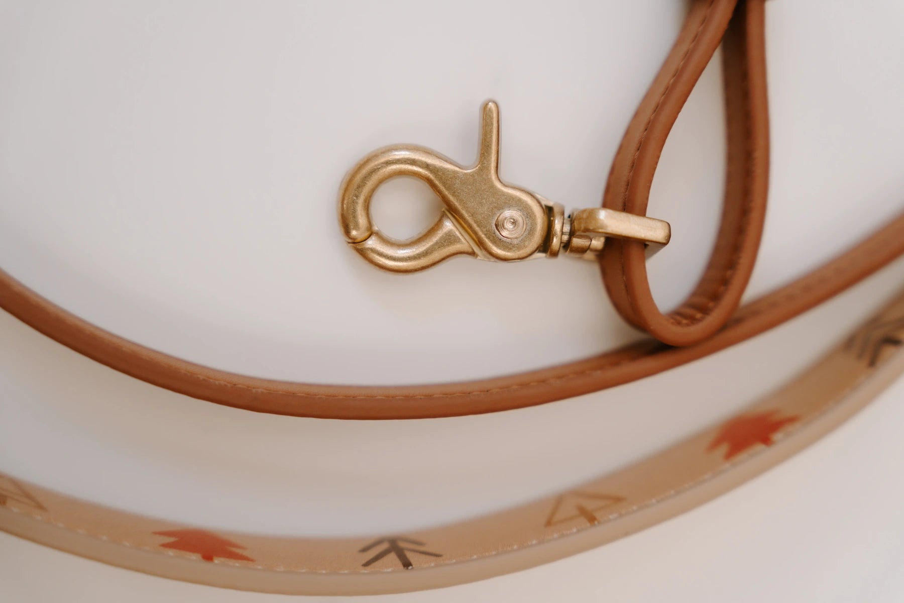 Unsere Handsfree Leine Any Way The Wind Blows kombiniert warme Mocha-, Rost- und Goldtöne, die so edel aussehen wie sie sich auch anfühlen.