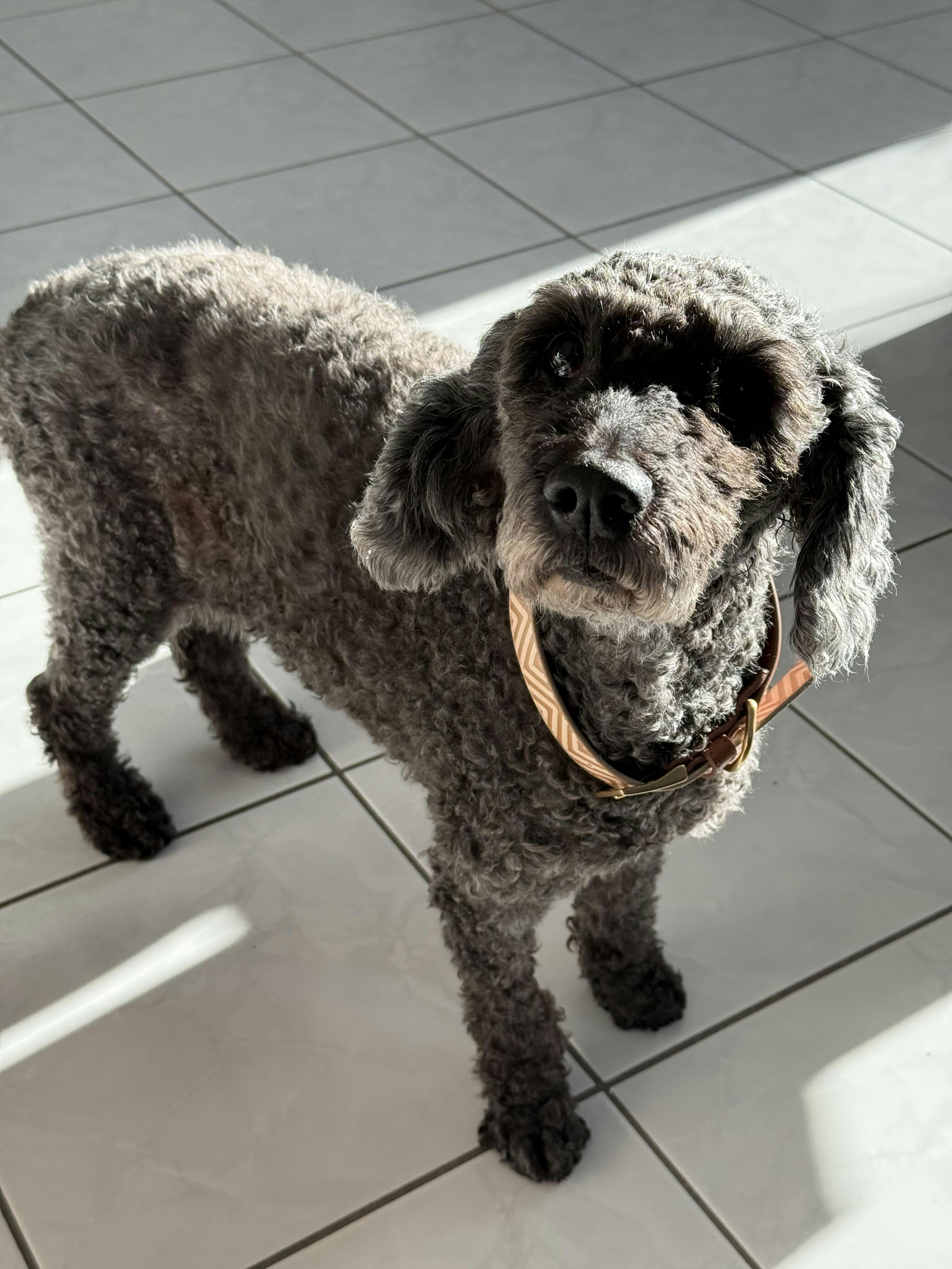 Die Leine liegt super leicht an und lässt sich perfekt quer tragen – wie eine schöne Handtasche. Und ich kann immer mit Nino im Partnerlook gehen, liebe das.