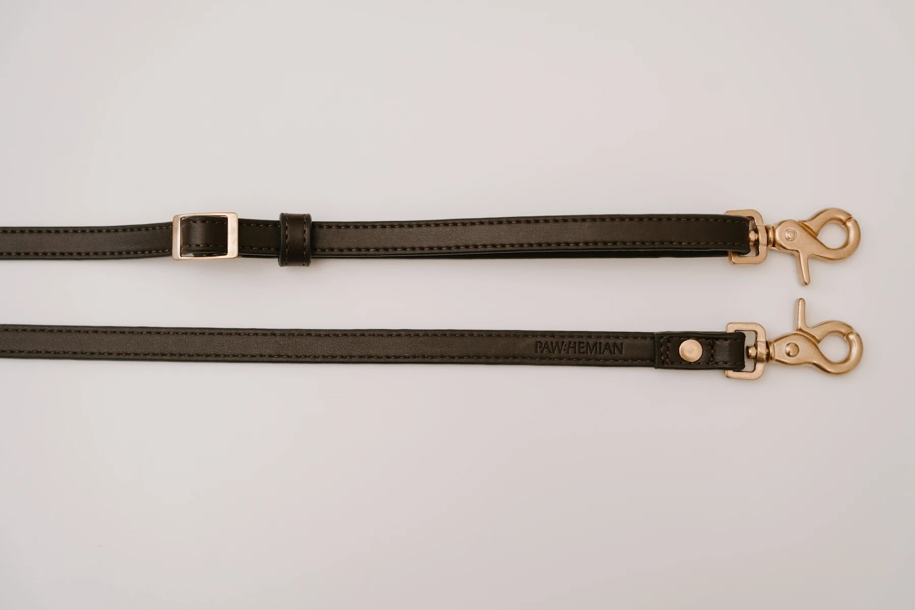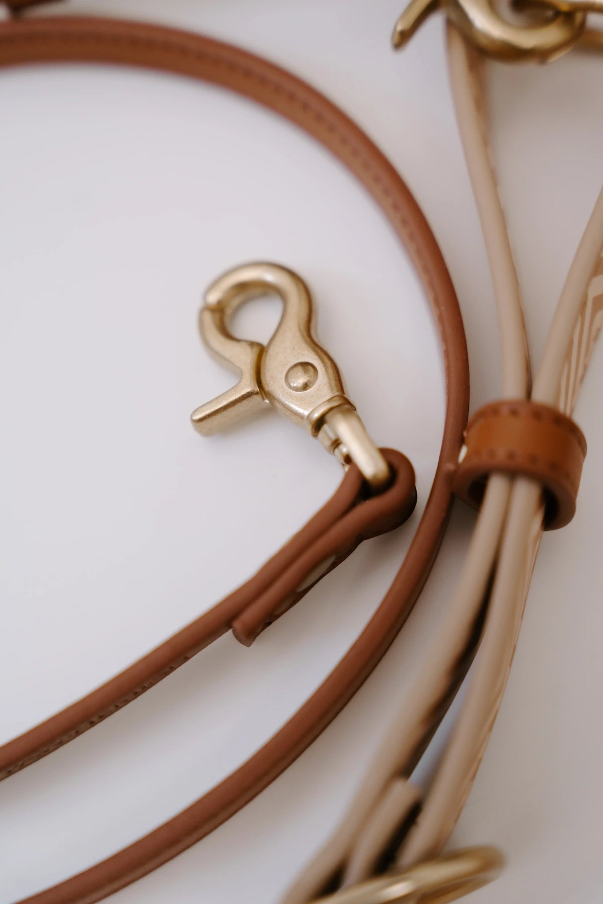 Wähle die Handsfree-Extension in Pure Cognac für Ton-in-Ton Eleganz oder Espresso Noir für maximalen Kontrast.