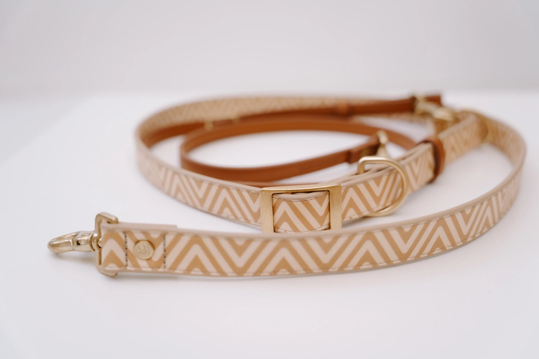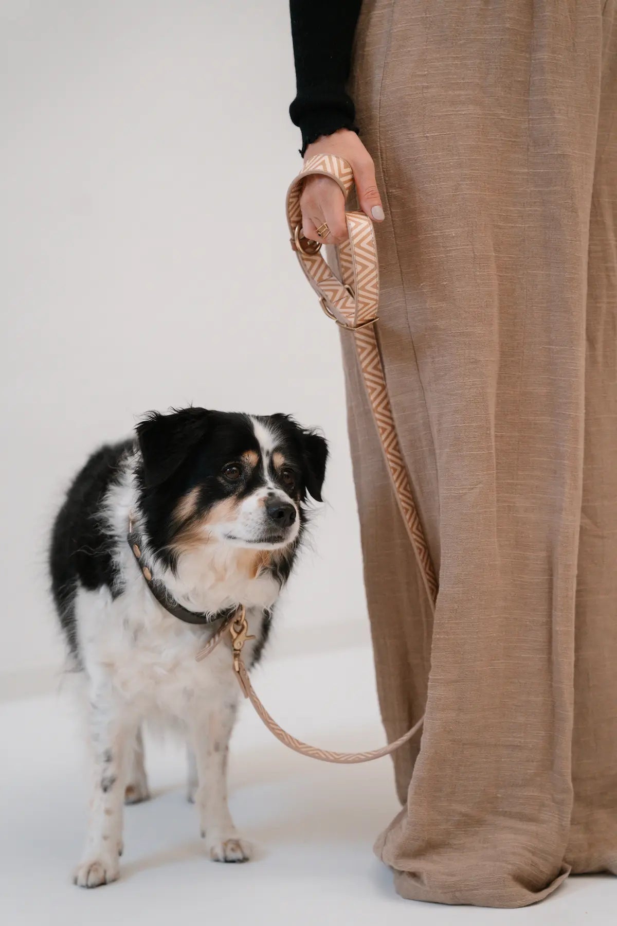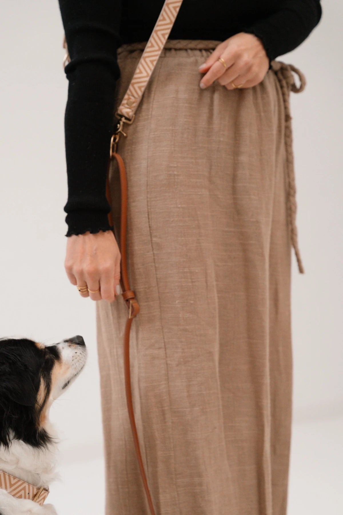 Unsere Handsfree Leine Easy Come, Easy Go kombiniert warme Erdtöne in cleanen Wellen. Kein Drama, keine Experimente – einfach ein Design, das immer funktioniert.